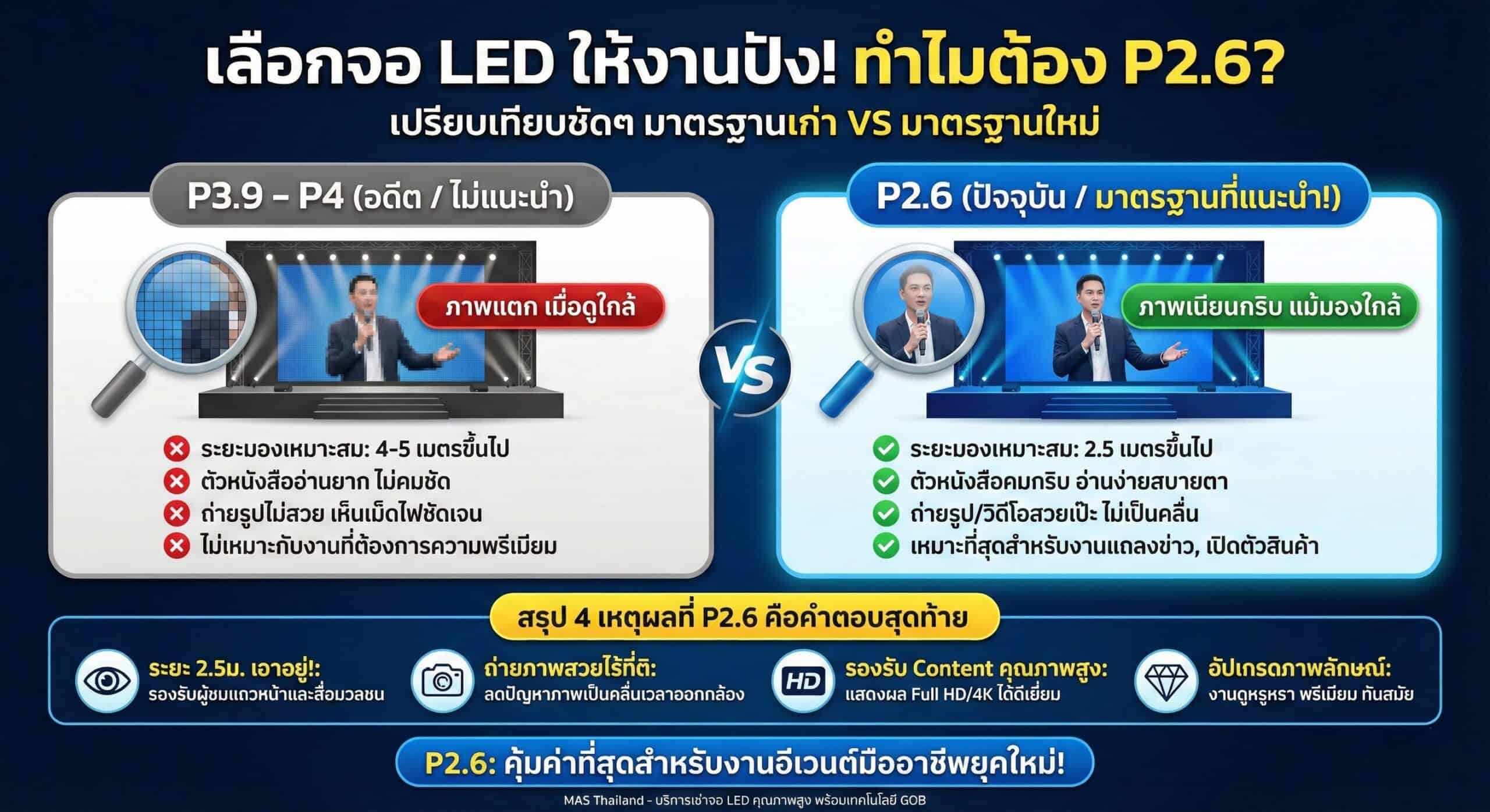 ลองจินตนาการถึงงานสัมมนาที่เนื้อหาน่าสนใจ แต่จอโปรเจคเตอร์กลับซีดจางเมื่อเจอกับแสงไฟในห้องประชุม หรือคอนเสิร์ตที่กำลังสนุกสุดเหวี่ยงแต่จอข้างเวทีกลับมีจุดดำ (Dead Pixel) กวนใจ ปัญหาเหล่านี้คือสิ่งที่ลดทอนความน่าเชื่อถือของงานลงทันที